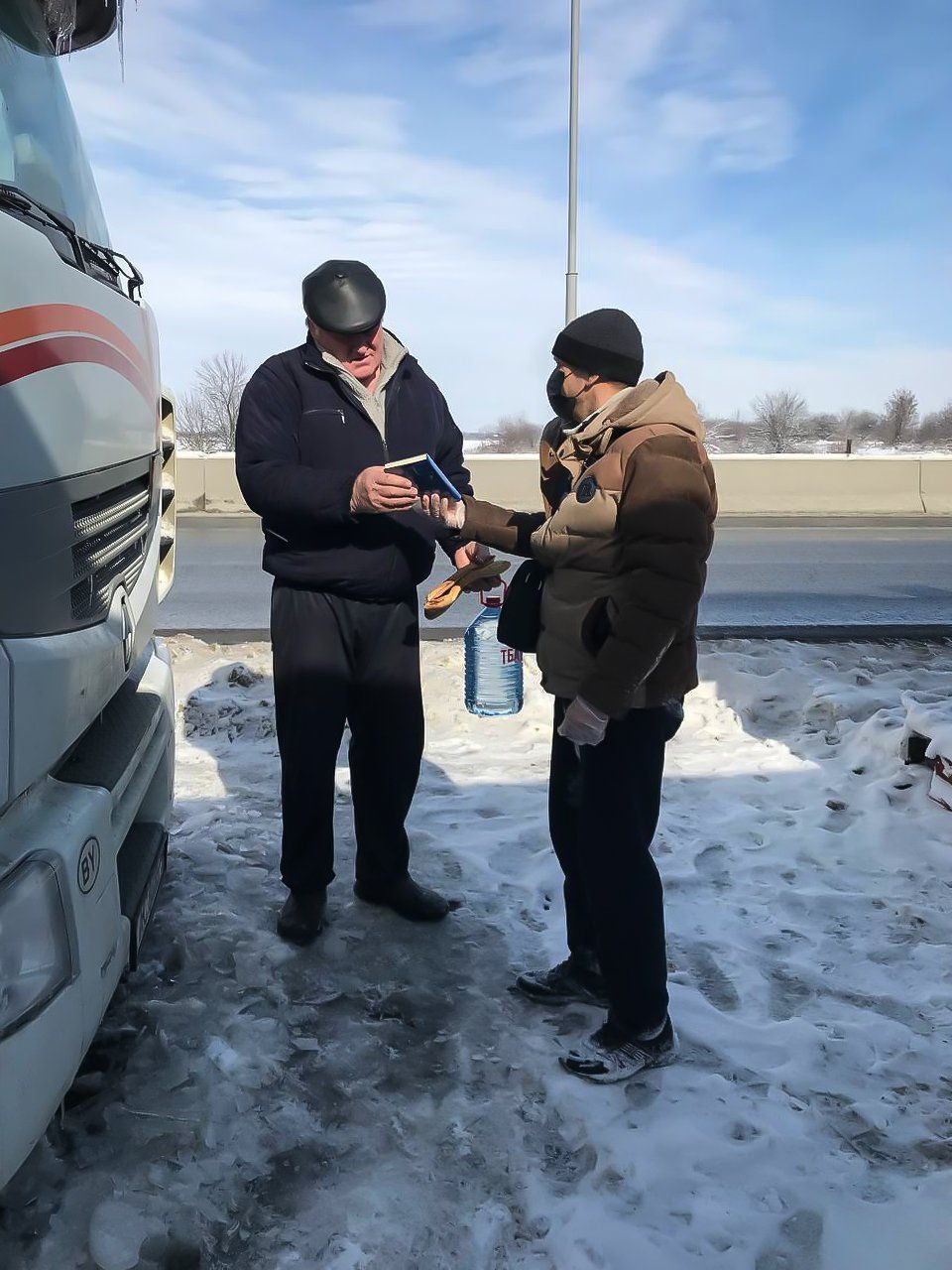 Жаль, что у нас нет Евангелия на турецком. Водителям из Турции мы смогли предложить лишь свежеиспеченный хлеб, чистую воду и молитву благословения.