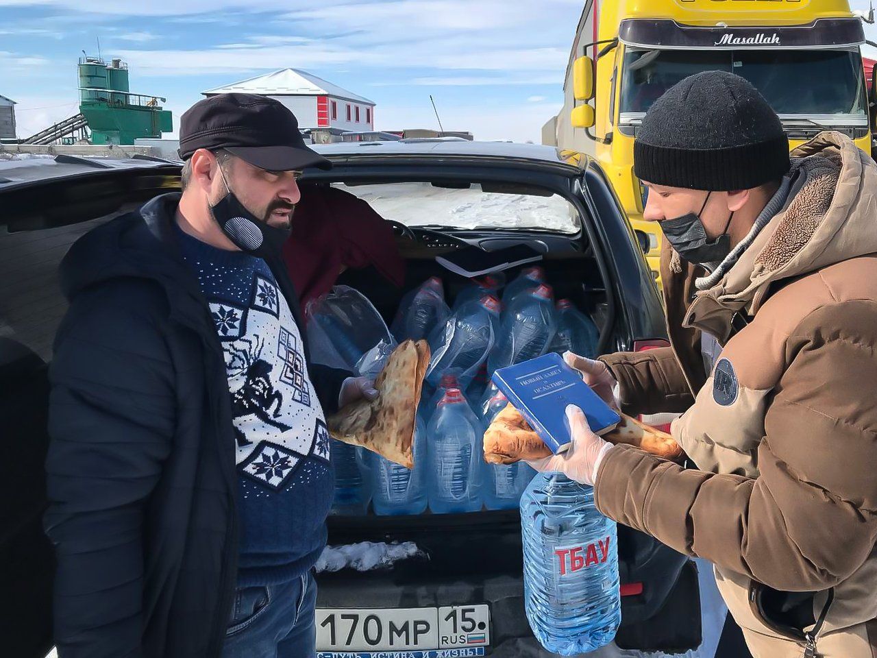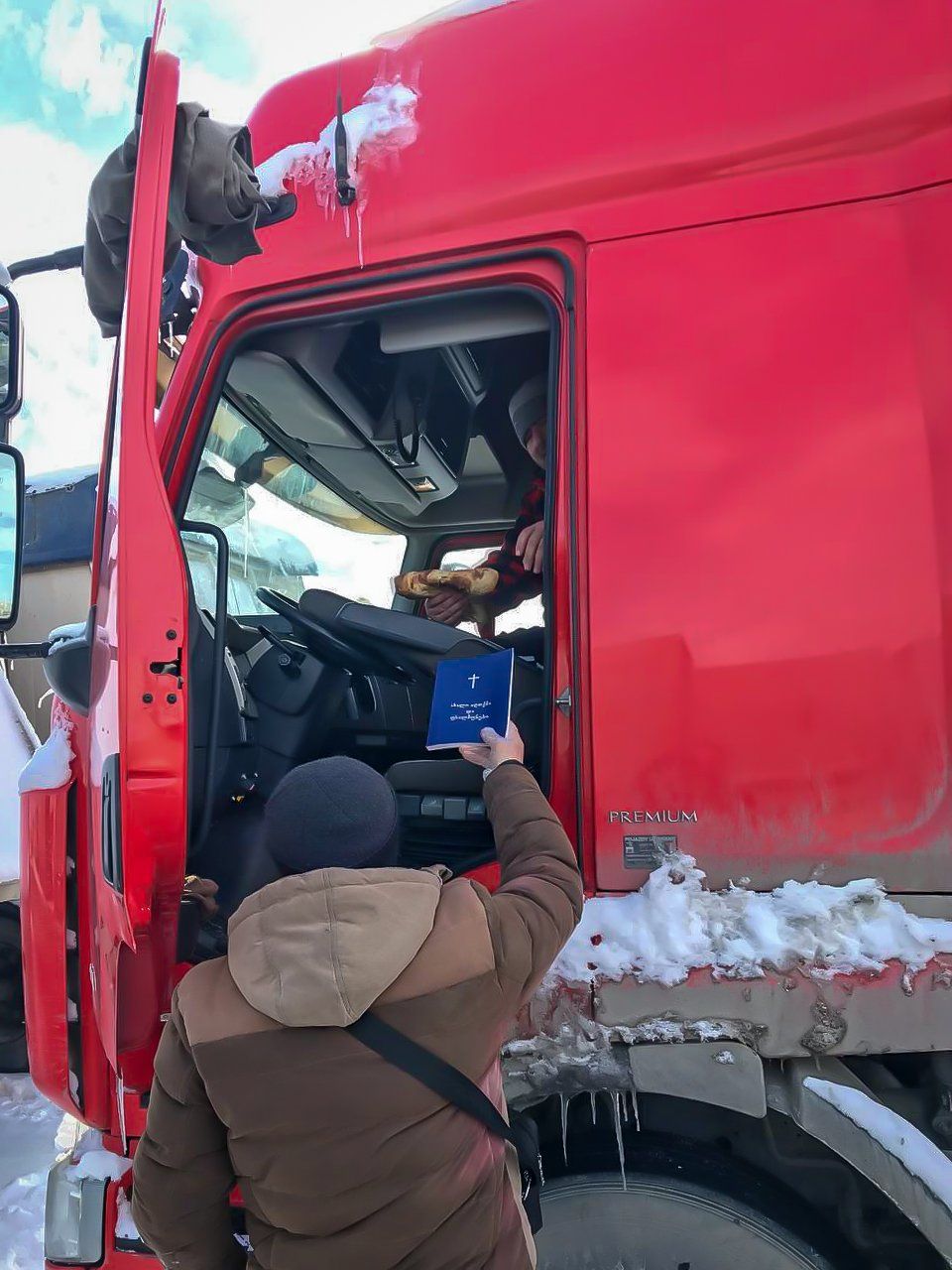 По инициативе одного брата из Северной Осетии и материальной поддержке другого несколько десятков водителей большегрузных автомобилей, ставших заложниками из-за опасности схода снежных лавин на автодороге Ларс (Россия) – Степанцминда (Грузия), получили хлеб, воду и Божье Слово на родном языке.